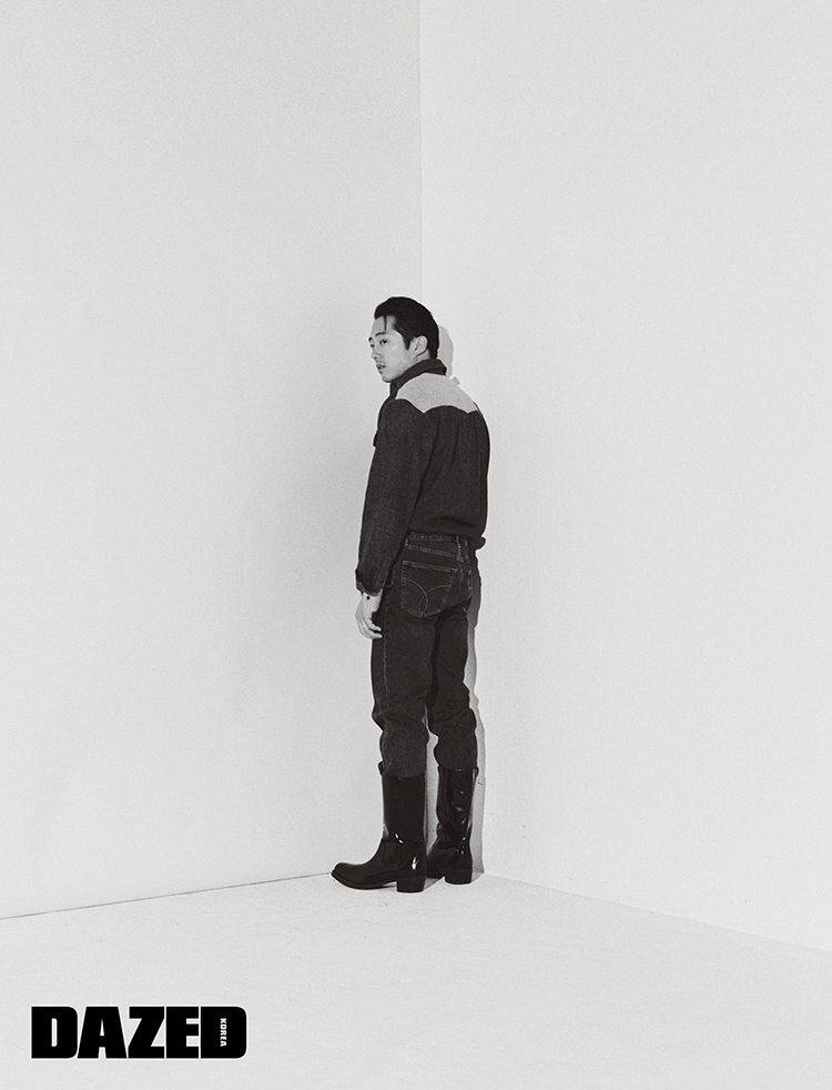 데님 셔츠와 팬츠, 웨스턴 부츠는 모두 캘빈 클라인 진(Calvin Klein Jeans),