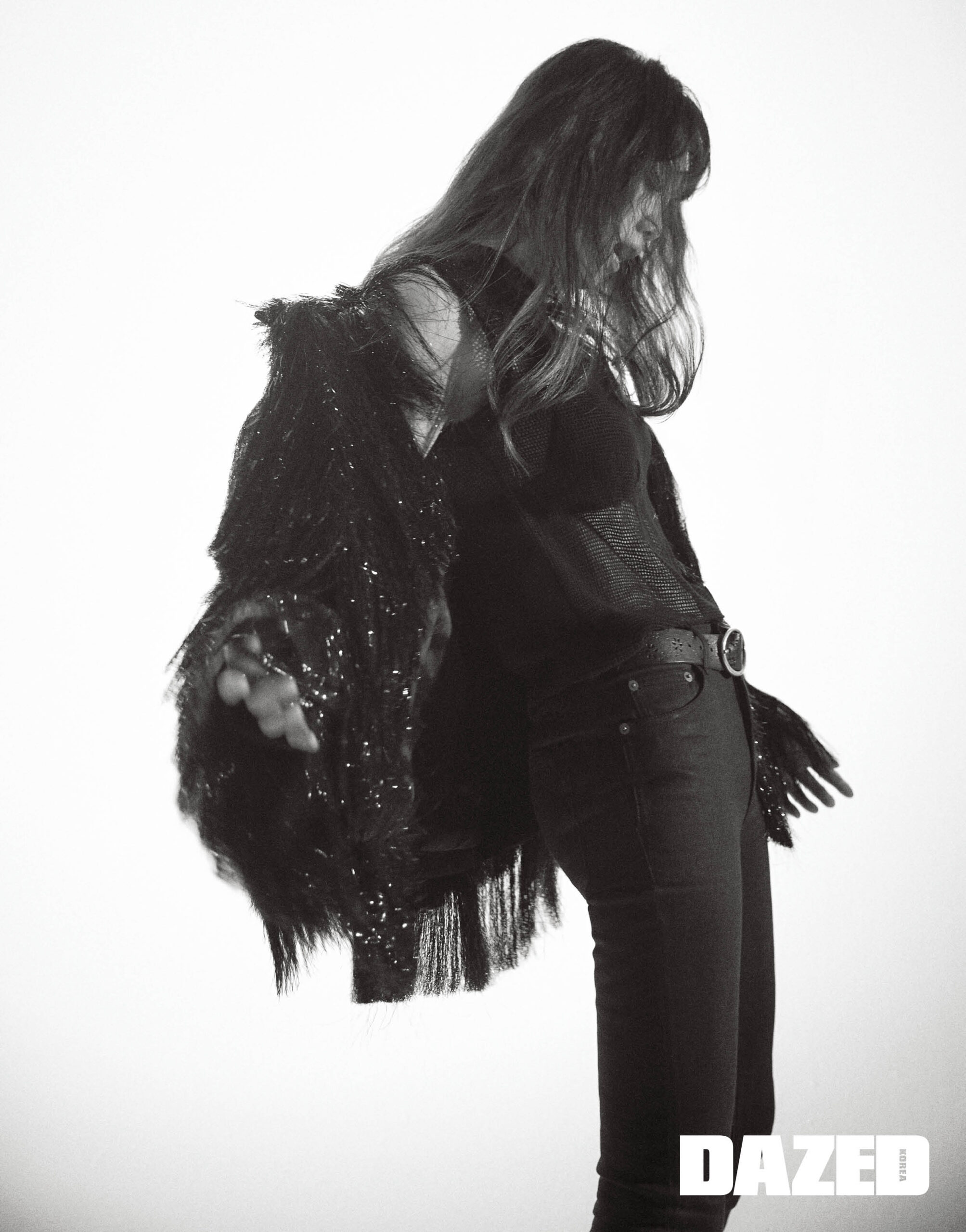 그래요? 저도 모델 때부터 <데이즈드>를 좋아했어요. <데이즈드>는 자유분방해요. 어떤 강렬함을 지니고 있 는데 그렇지 않은 걸 해도 그래 보이게 하는 능력을 지닌 게 <데이즈드> 효과 같아요. 뭘 하든 자유로울 수 있는 거. 그래서 저도 오늘 하고 싶은 대로 했어요.(웃음)