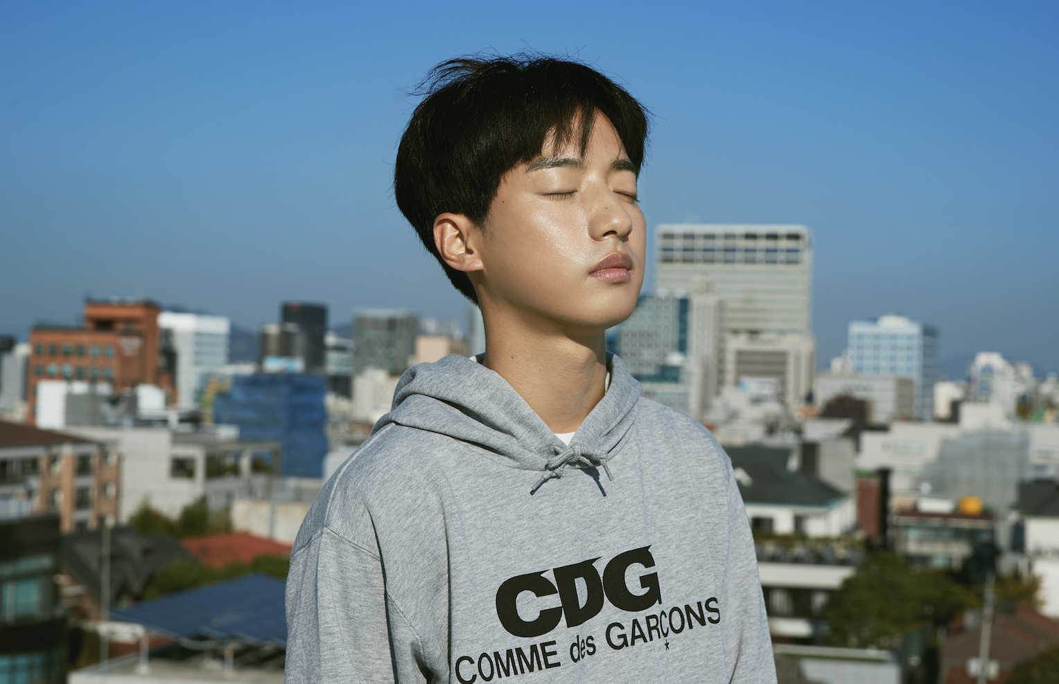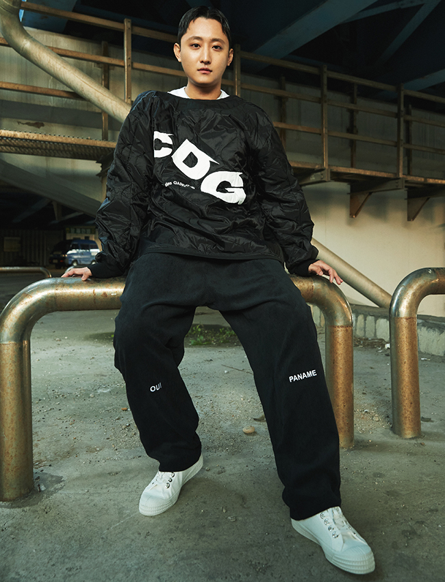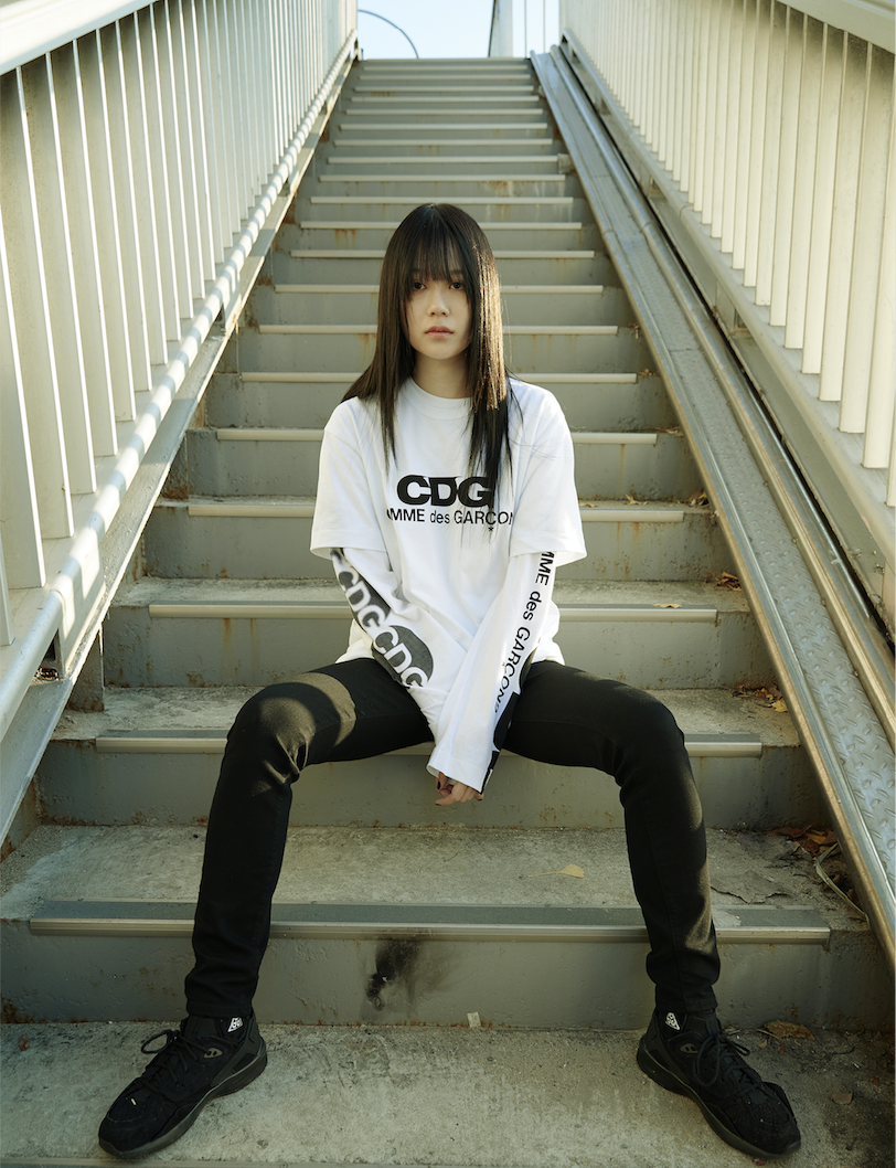 CDG의 뉴 컬렉션을 입은 다섯 명의 얼굴. 모델 앨리스, 아티스트 섭섭, 모델 나재영, 데이즈드 뷰티에디터 최소영 그리고 배우 김현목.