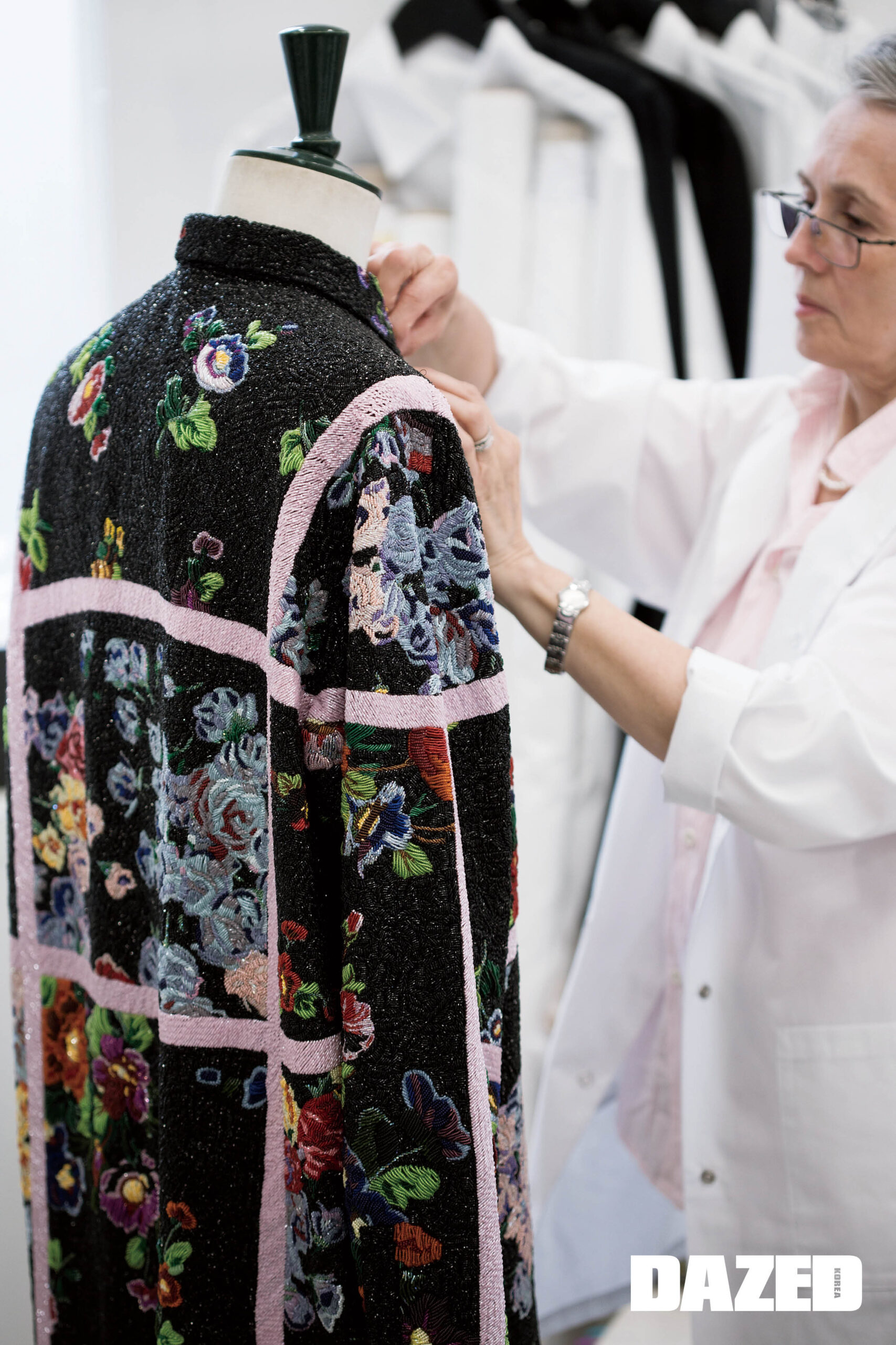 깃털과 비즈를 장식한 세련된 셔츠에는 실제 쿠튀르 기법을 적용했다. 뒷면을 카나주 레이저 커팅으로 장식한 가죽 트렌치코트도 마찬가지다. 아틀리에의 노하우와 아카이브 제품을 사용해 하우스 코드와 조화를 이루는 동시에 현대적이고 의미 있는 모델을 선보이기 위해 노력했다.