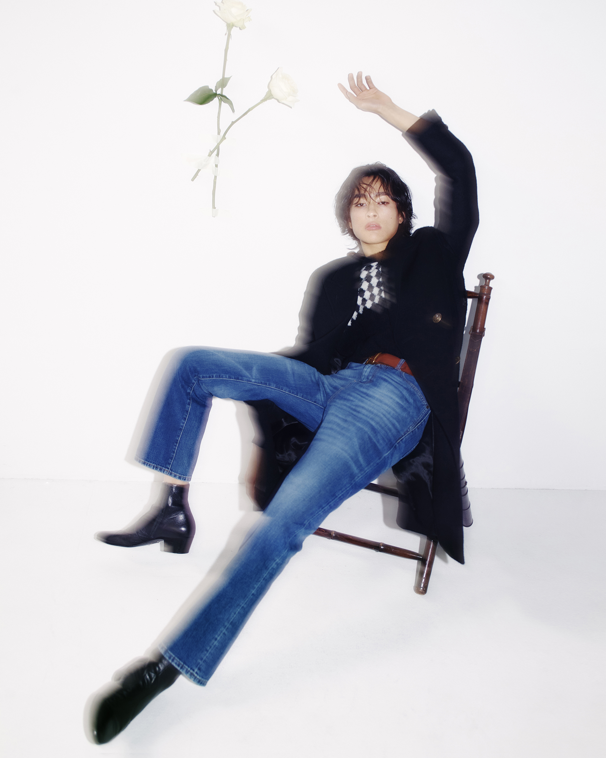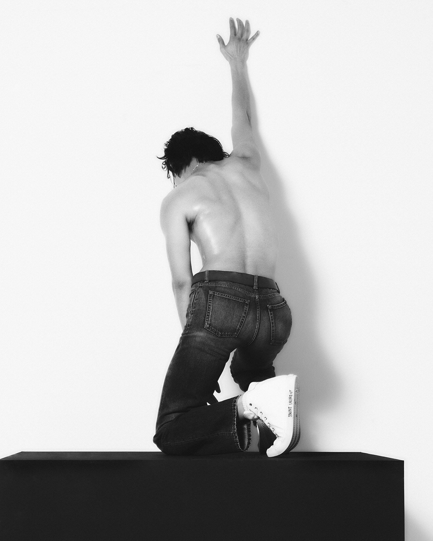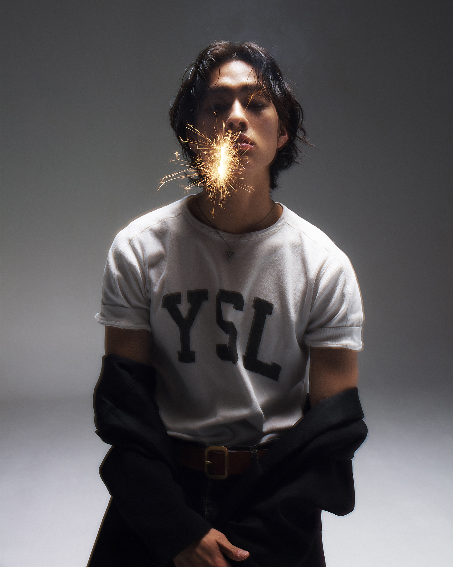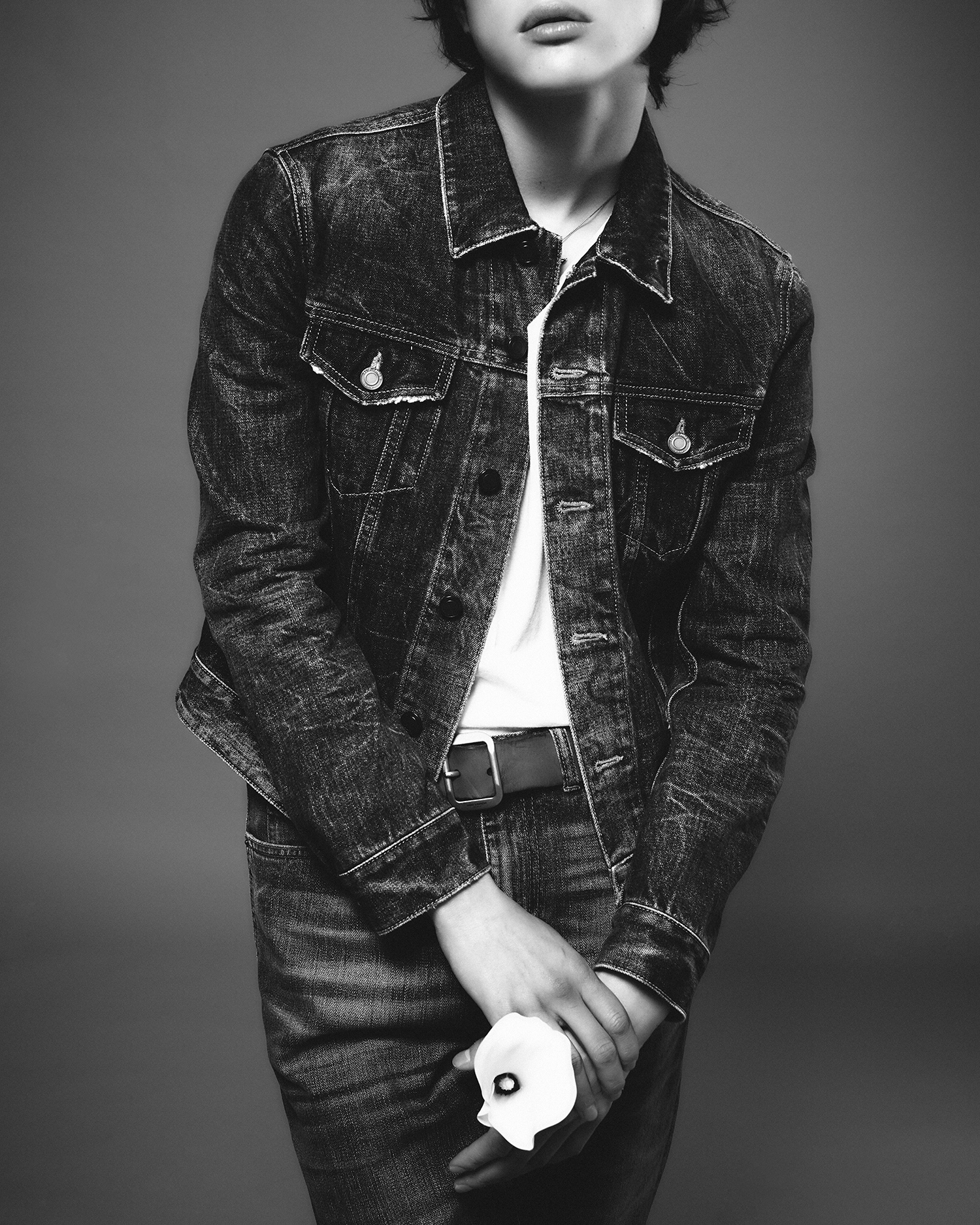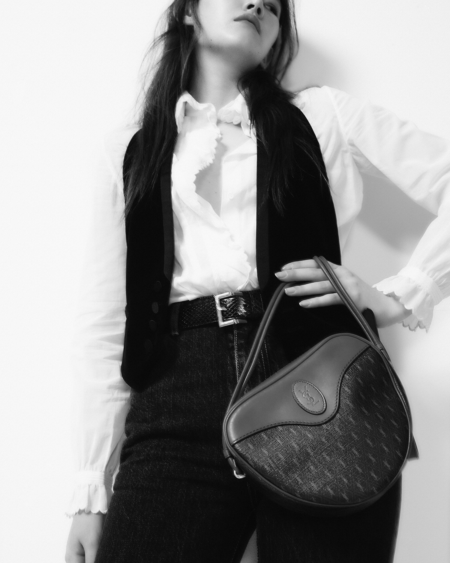 모든 의상과 액세서리는 생 로랑(Saint Laurent).
