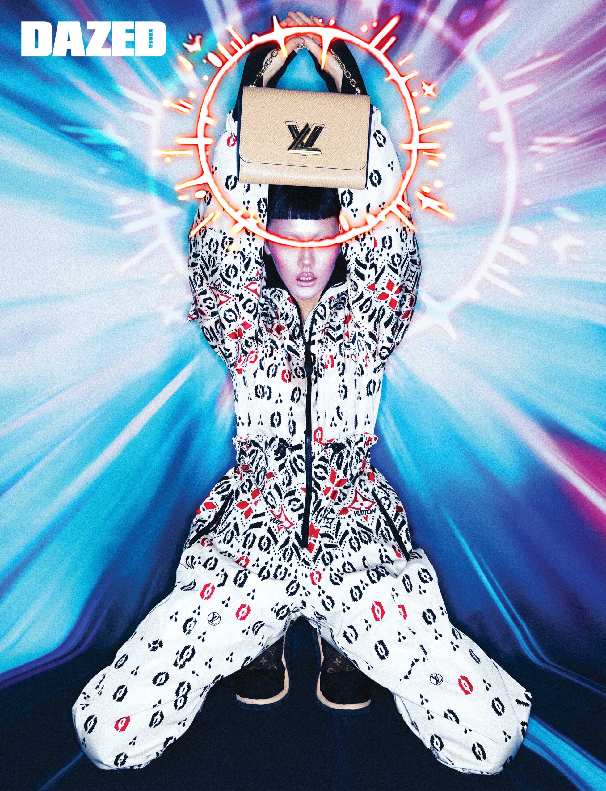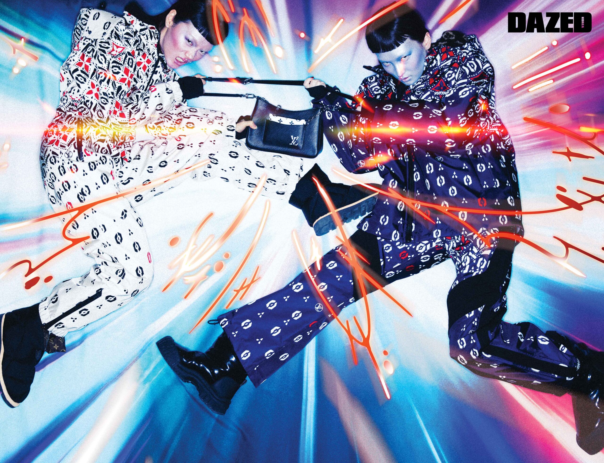 루루가 입은 LV 스노우플레이크 스키 수트와 LV 필로우 부츠는 루이 비통(Louis Vuitton). 루스가 입은 LV 스노우플레이크 재킷과 스키 오버올 셋업, 루이 하프 플랫 부츠는 모두 루이 비통(Louis Vuitton). 마렐 토트 핸드백은 루이 비통(Louis Vuitton).