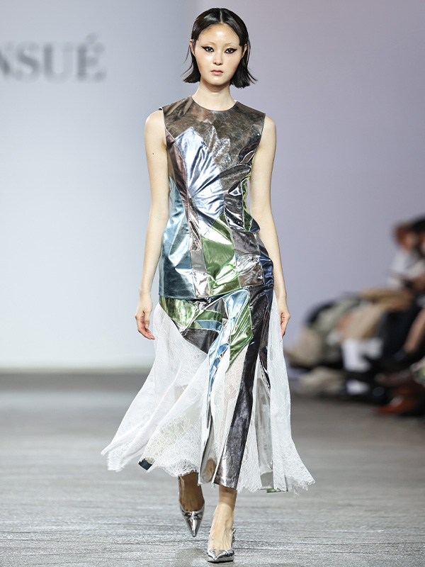 츠키가 입은 레더 드레스는 팜 엔젤스(Palm Angels), 리본 장식 스트랩 힐은 에이치앤엠(H&M), 레더 브레이슬릿은 에브리벌스데이(Everybirthday), 삭스는 에디터의 것. 시윤이 입은 튜브톱 드레스와 애시메트리컬 이어링은 알렉산더 맥퀸(Alexander McQueen), 이너로 입은 벨트 디테일 톱은 앤 안델만(Ann Andelman). 하루나가 입은 벨트 디테일 드레스는 VAVZ, 컷아웃 디테일 톱은 앤 안델만(Ann Andelman), 부츠는 캠퍼(Camper), 비즈 링은 구슬파세라(Guseul Passera), 시스루 니삭스는 샵사이다(Shop Cider).
