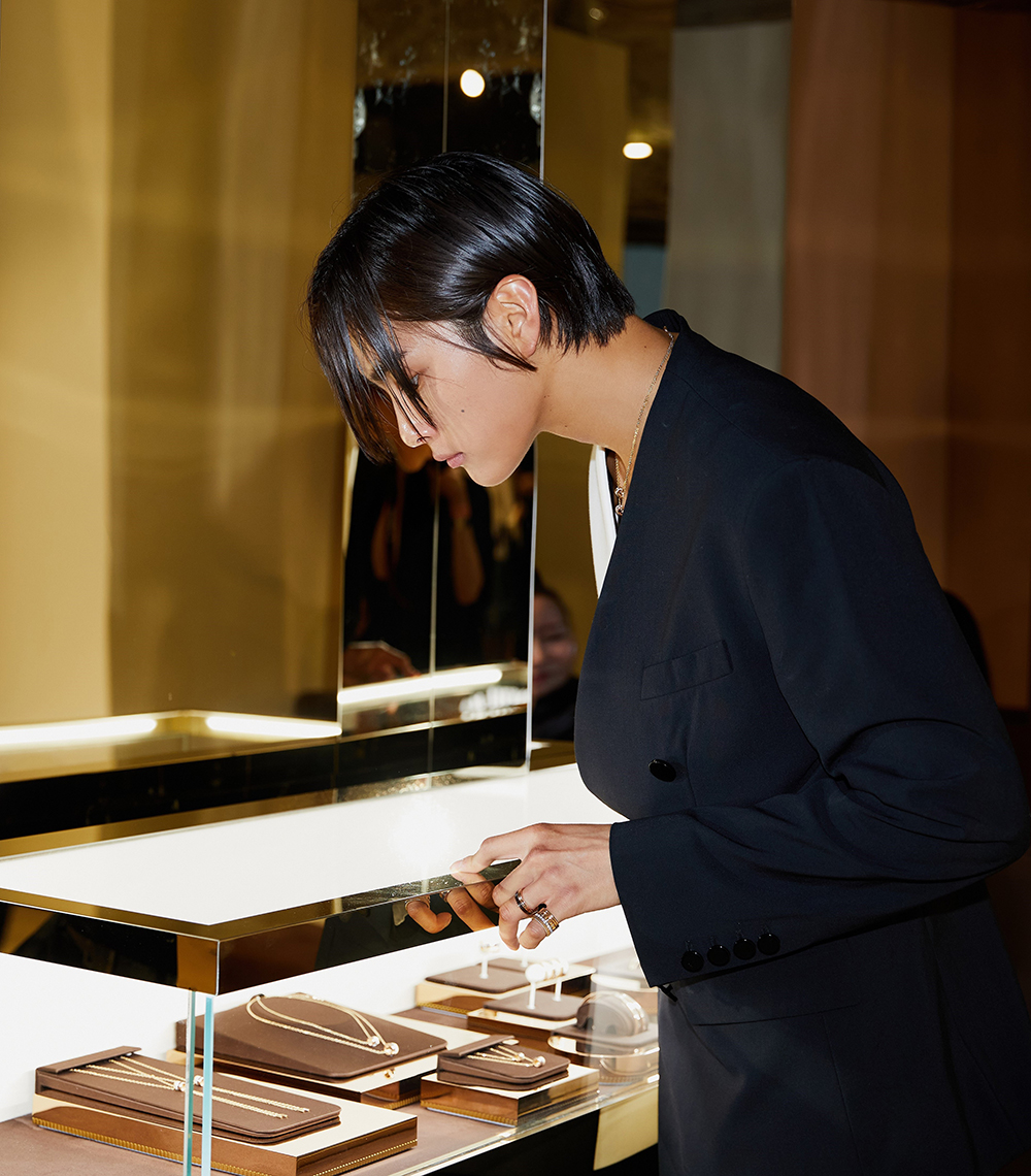 5월 30일, 부쉐론의 콰트로 팝업 부티크 오픈을 기념하여 자리를 빛낸 배우 한소희, NCT 마크, 프로듀서 코드 쿤스트, 가수 우원재, 배우 이호정, 모델 홍태준.
