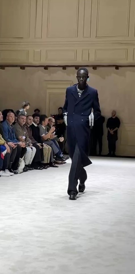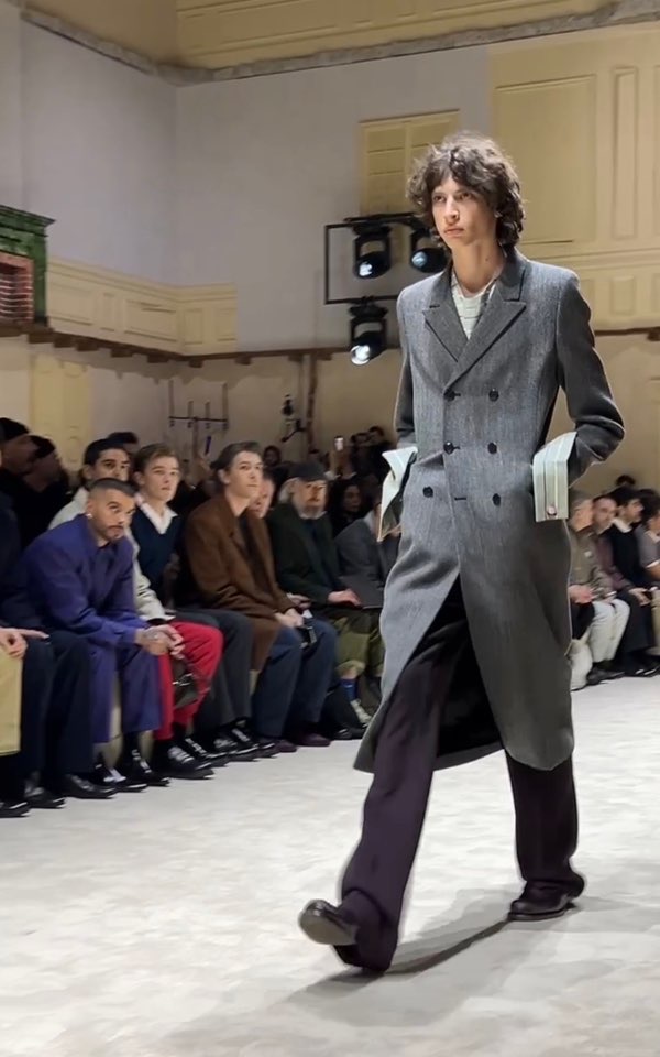 종종 작가는 완성된 작품 위에 덧칠을 한다. 새로운 붓질로 이전의 형상을 덮어 전혀 다른 작품을 짓는다. ‘펜티멘토’는 작품 내면에 존재하는 이러한 ‘이전의 흔적’을 뜻한다. 프라다의 2026년 가을/겨울 컬렉션의 타이틀은 ‘Before and Next’로, 펜티멘토에 관한 이야기다. 지층이 쌓여 역사를 증명하는 층위가 되듯, 프라다는 베뉴를 하나의 고고학 발견 현장으로 바꾼다. 미우치아 프라다와 라프 시몬스는 과거의 유산 위에 새로운 아이디어를 적층하며, 지워버리지 않는 진화를 택한다. 외적인 요소는 최대한 덜어내어 실루엣은 극도로 날렵하게, 본질적인 선만을 남긴다. 대신 그 안을 집요하게 채운다. 유물처럼 이리저리 구겨진 레더 재킷과 코트 내부에는 충전재를 채워 부피감을 복원했고, 코트 등 뒤에는 납작하게 압화된 모자를 달았다. 코트 표면을 긁어내면 숨겨져 있던 체크 패턴이 드러나는 펜티멘토 디테일까지. 코트와 니트는 안쪽에 있는 셔츠 소매가 길쭉이 삐져나와 있다. 단순히 낡은 것을 추종하는 빈티지라기보다는, 옷에 새겨진 퇴적물을 발견하는 과정에 가깝다. 언젠가 파블로 피카소가 “내 그림은 이전의 모든 파괴가 합쳐진 결과물이다”라고 말했듯, 프라다는 진화를 위해 기꺼이 파괴를 예찬한다. 그들에게 파괴란 소멸이 아닌, 본질을 발굴하기 위한 가장 정직한 재건의 시작이라는 듯이.