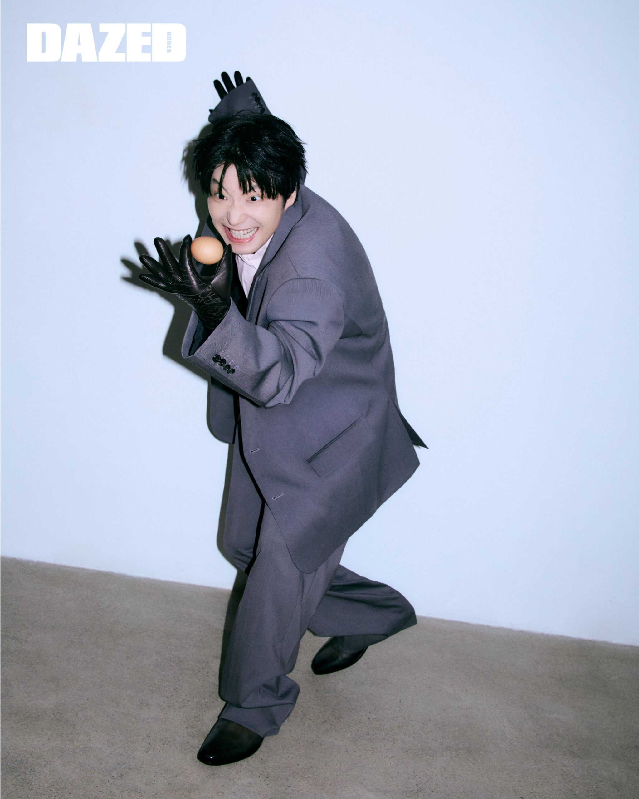 슈트 셋업은 렉토(Recto), 셔츠는 마티스 더 큐레이터(Matisse the Curator), 슈즈와 글러브는 벨루티(Berluti).