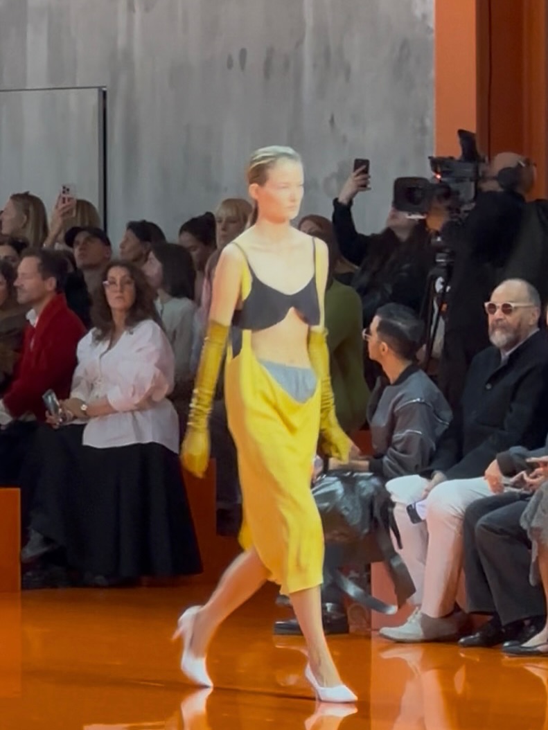 펜디의 쇼는 마치 유리잔에 담긴 노랑 레몬수 같았다. 표면은 단순해 보이지만, 안쪽에는 거품이 피어오르고 그 사이로 햇빛이 투명하게 굴절되었다. 실비아 벤투리니 펜디가 말한 ‘이중성’이라는 건 아마 그런 것이었을 거다. 한쪽에서는 무심히 흘러가고, 다른 쪽에서는 기묘하게 집요한 정밀함이 고개를 든다. 나는 그 균형을 음악 속 베이스의 떨림처럼 느꼈다.