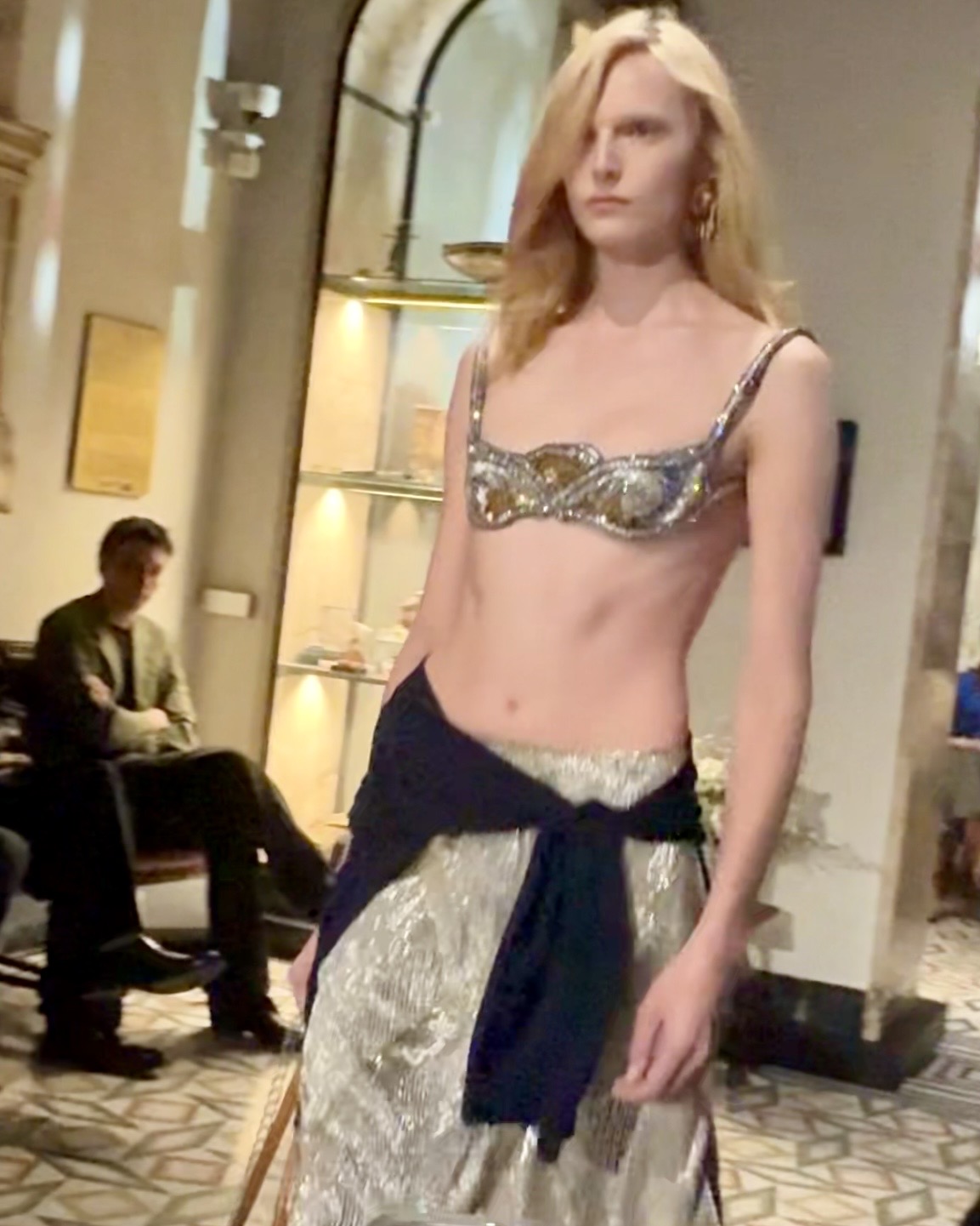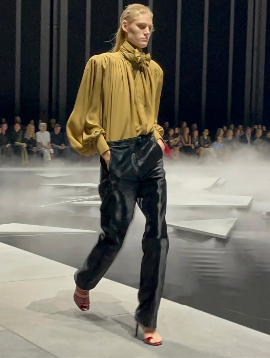 그리고 음악. 프레데릭 산체스가 만든 사운드트랙은 마치 영화의 오래된 컷들을 이어붙인 몽타주 같았다. 마스트로이안니와 안나 마냐니, 알랭 들롱의 목소리가 전자음 속에서 흘러나올 때, 나는 눈앞의 런웨이가 실제인지 아니면 환상인지 헷갈렸다. 그건 ‘픽셀화된 산책로’라는 말이 정확히 맞았다.
