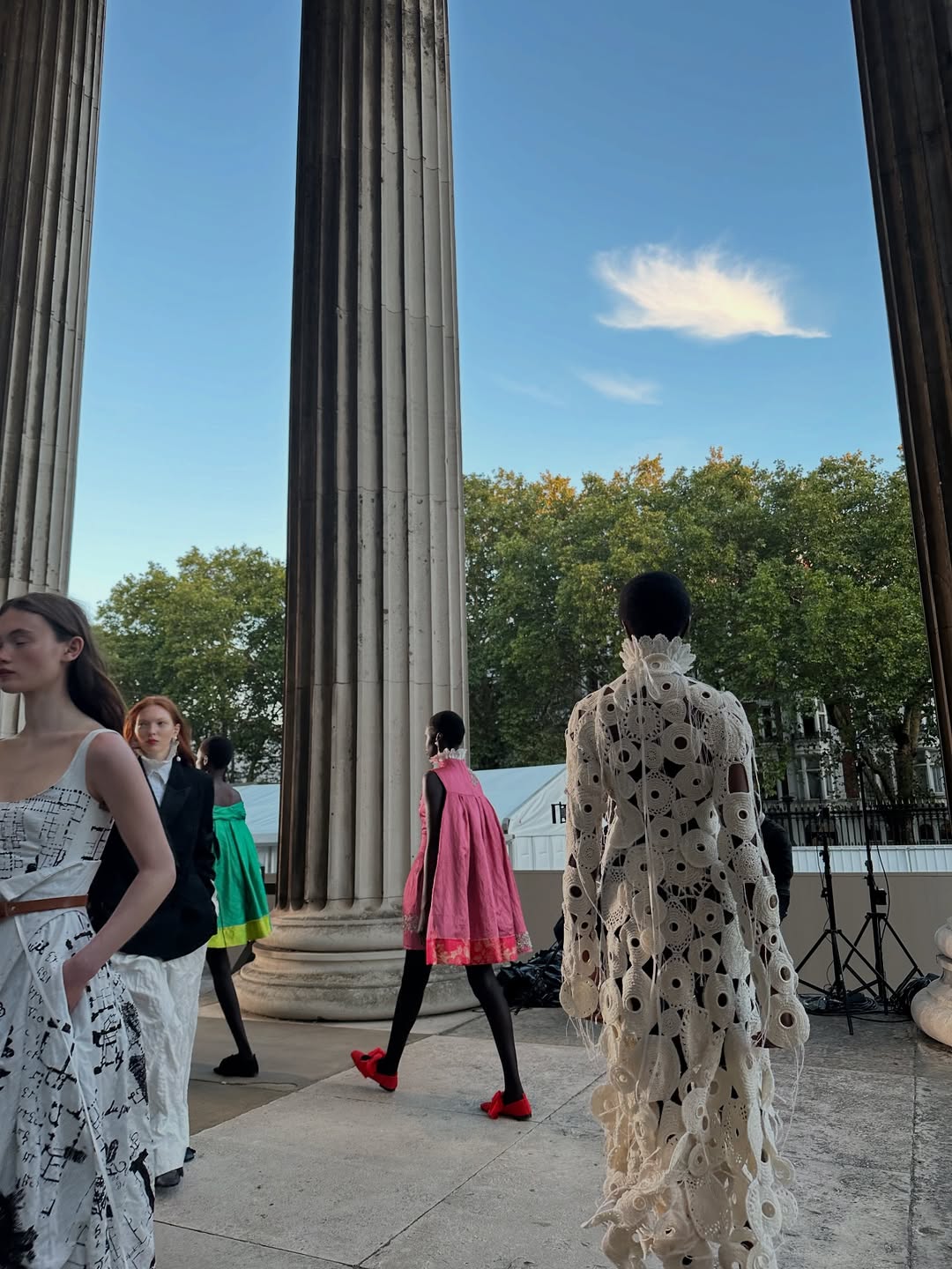 모델들이 걸어 나와 광학적인 색채와 구조들을 몸에 걸칠 때, 그것은 의상이 아니라 마치 달콤한 꿈의 조각 같았다. 흰색과 콘크리트 톤 사이로 투명한 오간자가 날아다니고, 버블껌 핑크와 옐로우는 어딘가 오래된 여름날 오후 두 시의 공기 냄새를 닮아 있었다. 사람들은 그것을 패션이라 부르겠지만, 내게는 어떤 기억의 파편, 계절을 꿰뚫고 나를 따라다니는 배경음 같은 것이었다.